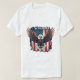 Show your American pride with this bold and patriotic design featuring a bald eagle flying against an American flag backdrop.