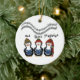 Three penguins singing holiday carols on We Three Penguins keepsake holiday ornaments.