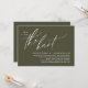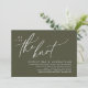 Mark the beginning of your forever with elegance using our romantic contemporary rustic olive green theme wedding elopement happily ever after lunch, brunch, reception dinner party celebration invitation card, "We tied the knot". Perfect for couples extending their joyous occasion, this invitation exudes sophistication with a hint of playfulness, setting the stage for a memorable event. Adorned with a timeless modern script design theme, it adds a touch of refined charm to your festivities. Crafted by TeeshaDerrick, this invitation promises to beautifully capture your love story.
