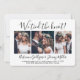 Invite family and friends to a simply elegant wedding reception with this stylish modern "we tied the knot" 4 photo collage invitation. All wording is simple to personalise for any reception only celebration, including a post elopement party, vow renewal ceremony, sequel wedding, 1st anniversary, cocktail hour or dinner party. Customise it to include the details of your choice, such as marriage date, dress code, rsvp, website, etc. (IMAGE PLACEMENT TIP: An easy way to centre a photo exactly how you want is to crop it before uploading to the Zazzle website.) The modern minimalist black and white design features four pictures of the newlywed couple, trendy handwritten script calligraphy, and chic typewriter style typography. Whether or not you eloped due to the covid pandemic or downsized to a smaller, more intimate minimony or micro wedding, the happily ever after party can still get started. Congratulations to the bride and groom!