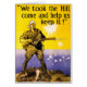 Australian World War I Poster by Harry T. Weston, 1915, depicting a soldier on a hiltop above a naval battle, probably referencing the Battle of Gallipoli where many Australian lives were lost.