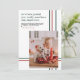 The modern minimalist design is accented by classic holiday colours—deep greens, vibrant reds, and crisp white borders. The layout is clean, featuring a festive, plaid-inspired geometric pattern on the reverse side. This card is designed to showcase your favourite family photo, framed by subtle stripes, adding a contemporary twist to traditional holiday aesthetics.