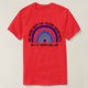 I give wanted to give this a 4 instead of a 5 because these Basic DARK T0shirts run unexpectedly SLIM or Narrow. Which is great if you do not have a potbelly, but I have a paunch. It isn't the shirt's fault that I've got a beer belly. The design and shirt itself is a quality cotton shirt. The color is more of a deep purple, but still a very pretty color. The Basic DARK T-shirts run a bit SLIMMER than the Basic Ts. The neck is a fraction narrower (or seems to be narrower) also. I'm a paunchy middle-aged woman and my neck is 12 inches (31cm) thick and the neckline fell about the same as in the photo of the man, and I had the desire to tug it a bit. So if you're a thick necked man or like loose shirts, be aware these are slimmer shirts. Once I get rid of my lockdown paunch it'll look great. The shirt washed well in cold water with no apparent bleeding. We don't have a dryer, so it hung dry. Did not shrink. Love the colors and the design. The design looks smaller on my shirt than it does on the model on-line. But still, it looks good on the shirt. The printing looks as it does on the model, just the size seems fractionally smaller. Washed garment in cold water, hung dry and design appeared unaffected.