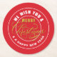 We Wish You a Merry Christmas Red Round Paper Coaster