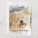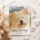 Delight your friends and family with a personalised pet Christmas card that perfectly blends humour and holiday cheer! With a hilarious photo of your dog and the playful saying 'WE WOOF YOU A MERRY CHRISTMAS', the card features a witty 'HAPPY HOWLIDAYS' greeting, is sure to bring a smile to every recipient. A not-so-usual Christmas card that promises a howling good time!