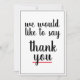 A casual "we would like to say thank you" card. Red and black workplace thank you card that you can make personal with a nice gesture from the boss, co-worker or staff on the inside. Just use the "personalise this template feature' to edit the text to make it your own. Other paper styles available.
