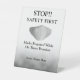 "Stop!! Safety First Masks Required While On These Premises" with grey face mask and grey to white metallic gradient background. Personalise with your store name or store owner's name with template.