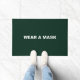 Wear a mask dark pine green and white custom text minimalist elegant Doormat rug.