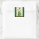 Vintage picture of a sweet miss carrying shamrocks with message, "The wearing of the green", adorn this sticker. Use for those special St. Patrick's Day mailings, scrap booking or more!