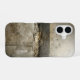 This mixed-media style artwork features weathered horizontal layers in muted beige, warm taupe, olive gray, and earthy brown. The upper section appears cracked and peeling, with subtle tones of ivory and pale sand, while the middle band introduces darker charcoal and slate hues. The lower portion deepens into mossy green and smoky gray, with drips and rough textures suggesting aged plaster or distressed concrete. Fine fissures and layered imperfections enhance the tactile quality. The art style reflects industrial abstract minimalism with influences from wabi-sabi aesthetics, celebrating imperfection, decay, and organic texture through restrained color and layered surface detail.