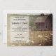 Invite guests to your upcoming rural ranch theme nuptials with the charming Weathered Rustic Barn Country Wedding Invitation. This casual custom marriage invite features a quaint farm photograph of an old wooden midwestern barn and fence with a tall green trees in the background and a field of white Queen Anne's Lace wildflowers in the foreground.