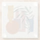 This simple and elegant boho influenced design is weathered and distressed shapes with two plan t stalks in earthy shades of orange, brown, green, and blue.