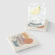 This simple and elegant boho influenced design is weathered and distressed shapes with two plan t stalks in earthy shades of orange, brown, green, and blue.