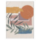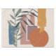 This simple and elegant boho influenced design is weathered and distressed shapes with two plan t stalks in earthy shades of orange, brown, green, and blue.