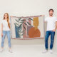 This simple and elegant boho influenced design is weathered and distressed shapes with two plan t stalks in earthy shades of orange, brown, green, and blue.