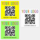 Personalise our rounded square weatherproof QR code labels with your company logo, QR code link(s), and custom text. These are professional waterproof stickers printed on 3M™ Scotchcal™ high-performance vinyl. They are scuff and tear resistant with strong adhesive backing. The dimensions are 1.5 inch x 1.5 inch. Designed in bright yellow and other colours (all colours are customisable). You can customise up to three different designs on one sheet (each with a different QR code URL). Low minimum order quantity (30 labels) and no setup fee.