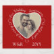 Perfect for any marriage date anniversary, this romantic custom design can add a heart-shaped frame to a wedding photo or a more recent image of the happy couple. Then all you need to do is replace the initials and the year that appear in white text on the red background. Ideal for celebrating a fine vintage romance!