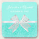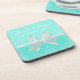 Wedding Announcement Chic Aqua Damask White Bow Coaster