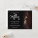 Wedding announcement with the image of a dreamy bride leaning against a wall with a bouquet of white flowers in the penumbra - classic style.