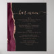 Wedding Bar Menu Burgundy Rose Gold Agate Dark Poster