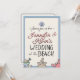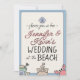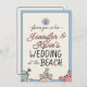 Personalized Wedding at the Beach invitation. Beach themed with cute sandcastle, shells, crab and pail illustrations on the front and back.