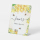 White background. Decorated with bumble bees, melting honey and honeycomb with yellow florals, flowers and a honey jar. With the text: Favours, please take one!