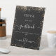 A stylish black background decorated with faux gold glitter sparkles. With the text: Please sign the guest book for the new mr and mrs. With a heart. White letters.