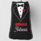 Fun golf head covers for a bachelor party golf weekend or wedding festivities and activities - here is a golf head cover in a black tie tuxedo and red rose corsage to personalise with your groom's name, father of the bride, father of the groom, the groomsmen. Or maybe it's a charity golf tournament that you just want to feel a bit extra for - customise with the names of the players in your foursome. Customised and personalised golf head cover for yourself or your favourite golf player. Get ready to tee off in style with our dapper and fun golf accessories, perfect for adding a touch of class and humour to your bachelor party or wedding weekend! Our golf collection features a delightful graphic of a black tuxedo with a pop of colour from a vibrant flower, making it a playful and stylish addition to your golfing adventure. Whether you're hitting the links with your best buddies or celebrating your upcoming nuptials, these golf accessories are a must-have for the occasion. So grab your clubs, don your dashing tuxedo gear, and get ready for a day of laughter, camaraderie, and memorable swings on the greens!
