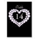 Decorate your wedding tables with these beautiful double-sided simple black and white diamond heart printed effect wedding table number cards. A great idea to help guests find their seats at your wedding. You must change the number to each number that you need and add them each your cart, one at a time. Quantity discounts may apply once you add all the items to your cart. If you have any questions or need help or other wedding items in this style please contact me. This simple design would also work well to add table numbers to any special function or sit down dinner event, particularly for love based events such as a valentines ball or other romantic dinners. Designed by Sarah Trett.