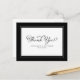 Black & white wedding Thank You card design features a beautiful chic border in black that includes an elegant petite white border. Calligraphy and script are charcoal grey on a white background. Personalise with your name and wedding date. A modern template for date and year compliments the unique calligraphy design. [NOTE: The wedding date display as shown, uses the vertical bar or line which can be found above the \ on a keyboard or on your smart device with the special characters. You can also customise with any other character of your choice.] The back of the card is white and provides room for your personalised handwritten note to add that very special touch that your family and friends will appreciate!