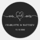 A stylish black background. Mr and Mrs with a heart. Personalise and add your names and wedding date.   White text.