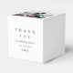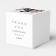 Elegant wedding thank you favour box personalised with one photo, name, and date in black and white.