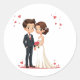 Includes 20 small stickers on one sheet. Heartwarming wedding-themed stickers featuring a charming bride and groom surrounded by floating hearts.