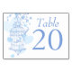 Beautiful graphic two love birds on a open bird cage art wedding table number card in blue, aqua and white. A great idea to help guests find their seats at your wedding. Personalise with your names and wedding date. Original design and bird art by Sarah Trett.