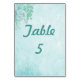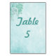 A lovely wedding blue floral table card, both sides of this table card has a blue floral parchment background, custom text displaying the table number in blue customise yours today!