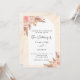 For a modern boho style wedding. An arch frame and rose gold marble print as background. Decorated with rose gold and pink florals, roses and pampas grass. Personalise and add names and details.