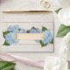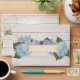 Matching envelopes to finish off your elegant bridal stationery or wedding invitation suite. Love farmhouse chic, white shiplap and all things rustic yet elegant? We had you in mind when we created this contemporary wide wooden reclaimed shiplap vintage wood background in warm white with hints of grey colour and paired it with hand painted blue hydrangeas that grew in artist Audrey Jeanne Roberts' own gardens. The Fresh shades of blues varying from turquoise aqua, to sky blue to periwinkle with just a hint of lavender grew on her front porch and give the pretty touch of summer this couple's shower invitation needs. These exquisitely detailed blossoms have painterly quality to them. A complete set of bridal and couple's shower party decor is available to match. Art copyright Audrey Jeanne Roberts, all rights reserved.