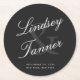 Wedding Bride & Groom in Elegant Shadowed Script Round Paper Coaster