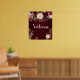 A rich burgundy welcome sign featuring large watercolor flowers and a contrasting white font on a deep burgundy background.