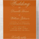 A simple but elegant and unusual wedding invitation with detachable RSVP. All text is golden. The background is burnt orange.