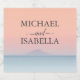 "Wedding by the sea under peachy sky sunset" is a captivating wedding design that beautifully captures the essence of a romantic seaside celebration. The custom typography, boldly displaying the words "Wedding by the Sea" takes centre stage, serving as a focal point that sets the tone for the entire design.
