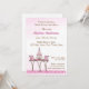 A stylish invitation for a bridal shower or bridesmaid luncheon with floral table and chairs, wedding cake with bride and groom topper and pink floral border.