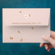 This design is of the Wedding Cake Butterflies Wedding theme that features an invitation with golden butterflies fluttering and landing on a sweet creamy wedding cake on a powder pink with a deep red accent colour. Click the collection link to view all of the products in this theme.
