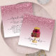 This elegant bakery or cake decorating business card features a burgundy and gold wedding cake illustration on a burgundy ombre background, with a top border of burgundy dripping faux glitter. Customise it with your business name in black handwriting script with swashes at the beginning and end, and your contact information in black sans serif font. (To keep the swashes, replace only the letters in those text fields, leaving the symbols in place.)