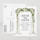 Elegant Wedding Canopy Watercolor Green White Floral Wedding Engagement Announcement Save The Date Postcard includes beautiful white roses and white peonies. The wood wedding canopy arch includes botanical greenery.