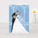 Wedding card is shown with a bride and groom graphic print.