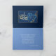 This wedding greeting card features an old Irish wedding blessing given as a custom for the happy future of the bride and groom. Front of card is of deep and mid-tone blue colourings with gold-ish and tan colourings of roses [ no actual gold or gold foil ink ]. Inside has a framed sampled version of the front of card on upper flap in deep blue colour. Lower flap of card is of a mid-tone blue-ash colour with white text. Text on front reads: " A Wedding Blessing For Your Special Day". Inside a warm and lovely blessing. Light enough blue colour for you to take a pen to sign your name.