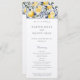 This dual-sided wedding program features a refreshing lemon grove and blue azulejo design that perfectly frames the details of the wedding ceremony. The front side welcomes guests to the nuptials of the happy couple, with their names prominently displayed, and outlines the procession of the ceremony. The back side introduces the wedding party, from the parents of the couple to the officiant, in an elegant font that complements the bright and lively pattern on the top and bottom. This program is a beautiful keepsake that will guide guests through the day's events and add a touch of Mediterranean charm to the occasion.