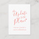 Update to the plan wedding cancellation card is part of the matching simple typographic heart coral white wedding set. Ideal to use as a wedding information card to inform your guests of a wedding or event cancellation, or reschedule. Other colour options are available. Original design by Sarah Trett for www.mylittleedenweddings.com on Zazzle.