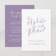 Update to the plan wedding cancellation card is part of the matching simple typographic heart purple grey white wedding set. Ideal to use as a wedding information card to inform your guests of a wedding or event cancellation, or reschedule. Other colour options are available, this version comes with envelopes. Original design by Sarah Trett for www.mylittleedenweddings.com on Zazzle.